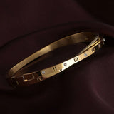 Add a touch of timeless elegance to your look with this stunning Roman Numeral Gold Plated Bracelet for women. Crafted in a luxurious gold-toned finish, this designer-inspired bangle features finely engraved Roman numerals and sparkling diamond-like stones for a refined statement. Perfect for daily wear, festive occasions, or as a thoughtful gift for birthdays, anniversaries, and Raksha Bandhan.