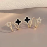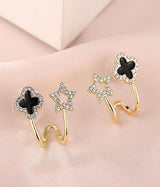 Bring luck and style together with Sori Style Four-Leaf Clover Earrings – a timeless symbol of good fortune and elegance. Crafted with a glossy black enamel finish and surrounded by shimmering crystals, these gold-plated clover studs offer a perfect balance of charm and sophistication.