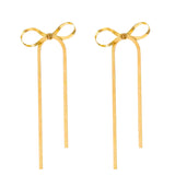 Upgrade your jewelry collection with these Golden Bow Knot Drop Earrings for Women, designed to add a touch of elegance to any outfit. Featuring a delicate bow design with long dangle chains, these earrings are the perfect accessory for parties, weddings, date nights, and festive occasions.