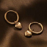 Add timeless elegance to your look with these Gold Small Heart Hoop Earrings – a perfect blend of classic hoops and romantic charm. Designed with a polished gold finish, these small hoop earrings with heart dangles are lightweight, stylish, and versatile for everyday wear or special occasions.
