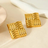 Make a bold statement with our Gold Square Stud Earrings, designed to turn heads with their modern geometric texture and luxurious shine. Crafted with a unique ribbed design, these earrings are perfect for elevating everyday looks or adding a touch of glamour to evening wear.