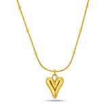 Showcase your style with this elegant 18K gold-plated heart pendant necklace featuring a trendy ball chain design. This eye-catching piece includes a bold puffed heart charm that symbolizes love and self-expression, making it a must-have for modern jewelry lovers.